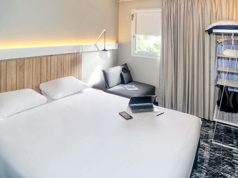 The rooms are arranged in a modern and functional style. Air-conditioned and soundproofed, they feature Sweet Bed by ibis bedding, offering pleasant support for a restful night. The presence of a flat-screen TV and free Wi-Fi connection ensures a moment of relaxation, while the private bathroom, equipped with a shower and toilet, provides the essentials for a simple stay. Some rooms are family-friendly, with the possibility of adding an extra bed for a child.